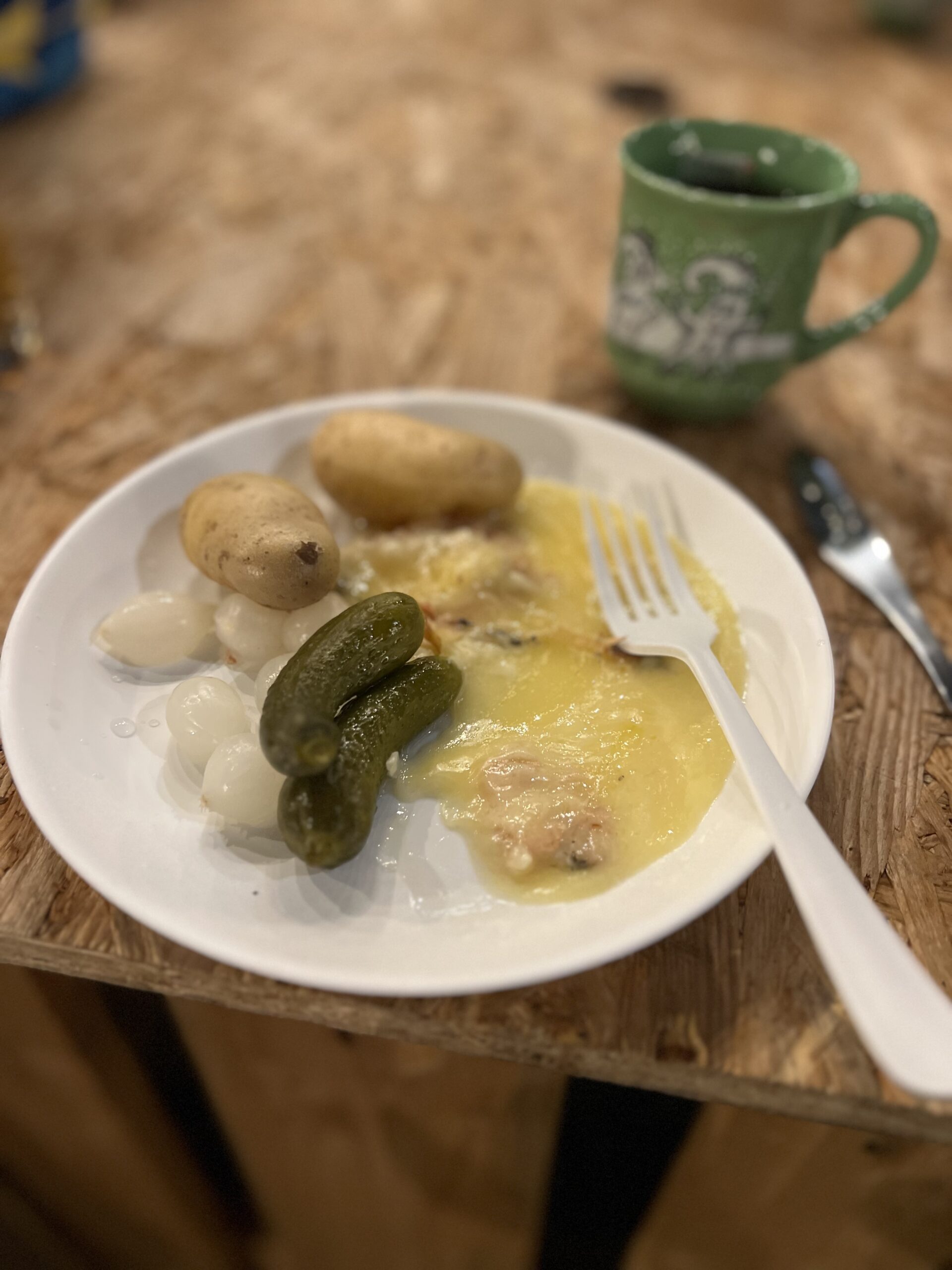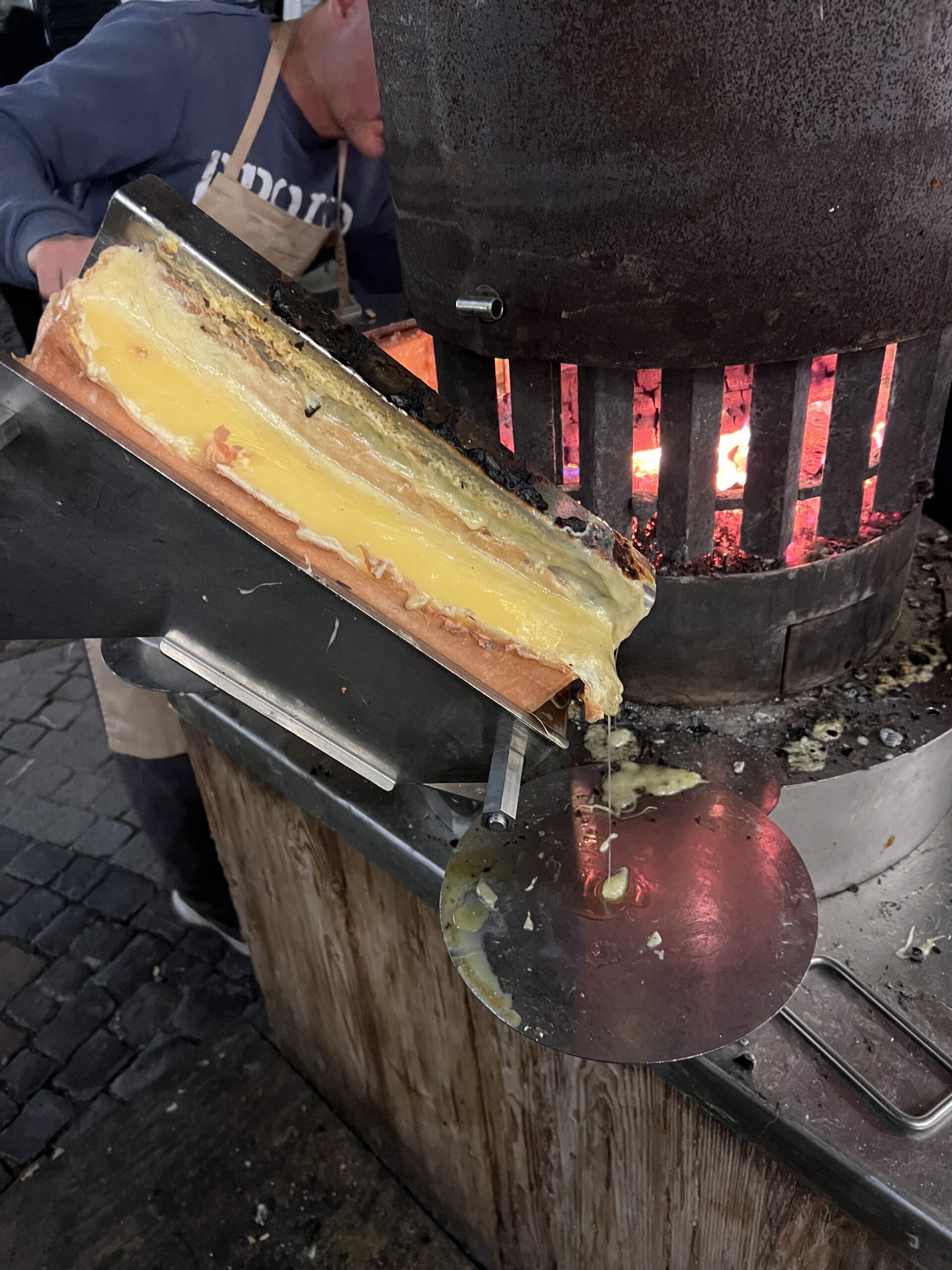 We had a tasty gluhwein and took a quick look at the Christmas market before we were on our way to a concert for more gluhwein and some raclette! If you are unfamiliar with Switzerland, you may not understand how serious they are about cheese. They have special machinery and a whole industry on how to melt it, including huge furnaces that melt the raclette cheese to eat with potatoes, sausage, pickles, and bread. It is simple but delicious and perfect for the cold Swiss winters.